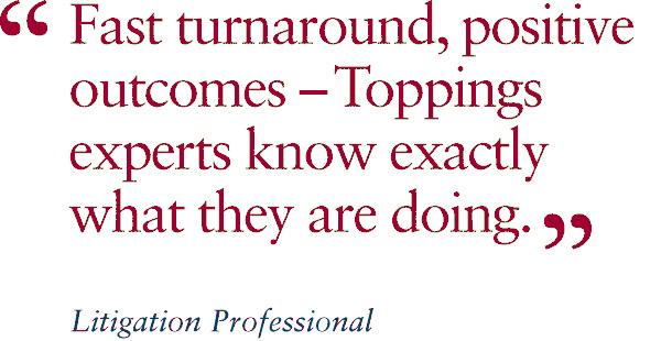 Toppings know how to help our clients achieve that objective across a wide range of claims - from Large & Complex losses to low value claims in the MoJ Portal - saving time, trouble and costs.